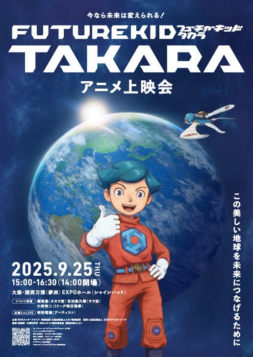 NHKエンタープライズとアニメーションスタジオSTUDIO4℃がタッグを組んだ環境教育に役立つオリジナルショートアニメーション・シリーズ「Future Kid Takara」。アニメーション × リアル映像で構成された地球温暖化や気候変動について学べるオリジナルストーリーです。ワールドプレミアとなる世界初の上映会を、2025年9月25日(木)15時から、大阪・関西万博のEXPOホールで行います。