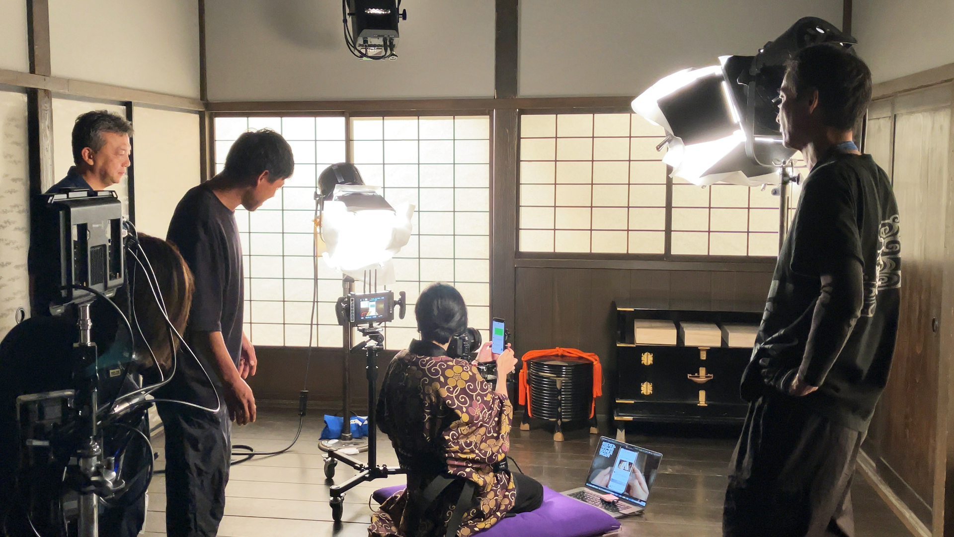 最近では、スマートフォンの画面だけで進行するSF歴史ドラマシリーズの一編として、江戸の浮世絵師・写楽をテーマにした「一人称スマホ視点映像」で人物像を描く手法に挑戦しました。スマートフォンの視点のみで撮影するという制約の中で、カメラをどう役者さんにつけてもらうか実験したり、映り込む指の動き(指のお芝居)をみんなで話し合うなど、通常のテレビドラマとは異なるアプローチを試すことができ、とても面白い経験になりました。
